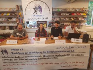Tagungsteilnehmer des Verteidigungsausschuss der Umwelt-Rechte im Iran fanden um 19.30 MEZ im 14.Juni. 2019 mit der Delegation und eine Gruppe von Menschenrechtsaktivisten und andere Gäste auf dem Media statt.