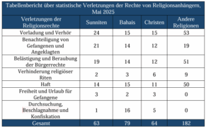 Statistischer Bericht über die Verstöße gegen die Rechte der Anhänger von Religionen, Mai 2025