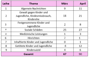 Bericht über die Verletzung der Rechte von Kindern und Jugendlichen, im April 2025