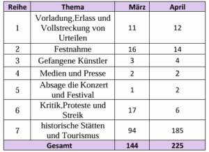 Bericht über die Verletzung der Rechte von Kunst und Künstlern im April 2025