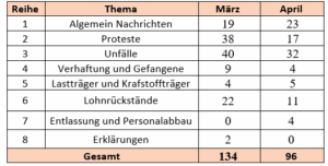 Die statistische Bericht über Verstöße gegen Arbeits- und Arbeitnehmerrechte, April 2025