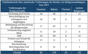 Statistischer Bericht über die Verstöße gegen die Rechte der Anhänger von Religionen, Juni 2025
