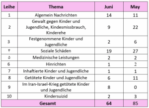 Bericht über die Verletzung der Rechte von Kindern und Jugendlichen, im Juni 2025