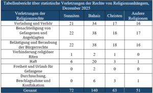 Statistischer Bericht über die Verstöße gegen die Rechte der Anhänger von Religionen, Dezember 2025
