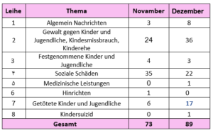 Bericht über die Verletzung der Rechte von Kindern und Jugendlichen, im Novamber und Dezember 2025