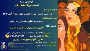 Die öffentliche Sitzung des Zentrums zur Verteidigung der Menschenrechte im Iran fand am Sonntag, den 23. November 2025, um 15:00 Uhr mitteleuropäischer Zeit mit der Teilnahme zahlreicher Menschenrechtsaktivisten und anderer Gäste virtuell über Zoom, YouTube und die App des Zentrums statt, unter der Leitung von Nadia Mosharaf Ghahfarokhi.
