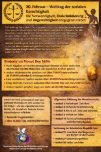 Die Gesprächsrunde der Vereinigung zur Verteidigung der Menschenrechte im Iran fand am Sonntag, dem 15. Februar 2026, um 15:00 Uhr (Mitteleuropäische Zeit – MEZ) im virtuellen Raum über Zoom sowie über