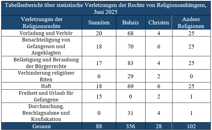 Die obigen Statistiken wurden aus Berichten in- und ausländischer Medien, die von der Regierung der Islamischen Republik Iran anerkannt sind, gesammelt und können praktisch nicht mehr als 25 bis 30 Prozent der gesellschaftlichen Realität darstellen.