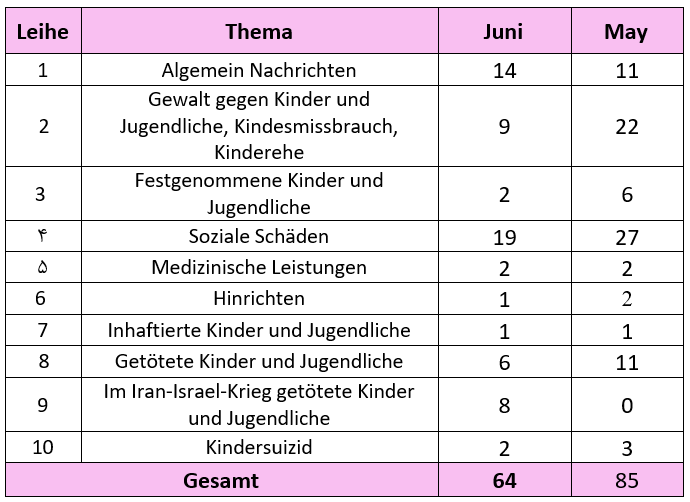 Diese statistischen Berichte wurden aus mehr als 70 Nachrichten im Laufe des Monats Juni 2025 erstellt.