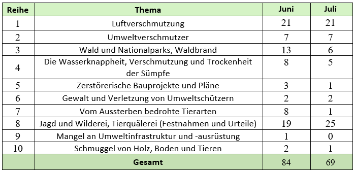Diese Berichte wurden von der Website des Ausschusses zur Verteidigung der Umwelt zusammengestellt, die Informationen aus in- und ausländischen Medien wie Hrana, ILNA, IRNA, Dideban, ISNA, Mehr, Khabarban, Ghatreh, Tasnim, Euronews, Ensaf und dem Nachrichtenportal für Umwelt und Wildtiere gesammelt haben. Die obigen Statistiken wurden aus Berichten von in- und ausländischen Medien zusammengestellt, die von der Regierung der Islamischen Republik Iran anerkannt wurden, und können daher praktisch nicht mehr als 25 bis 30 Prozent der gesellschaftlichen Realität widerspiegeln.