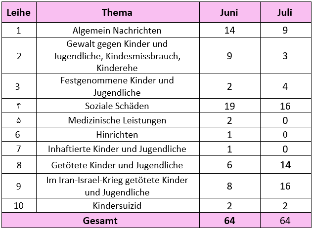 Diese statistischen Berichte wurden aus mehr als 70 Nachrichten im Laufe des Monats Juli 2025 erstellt.
