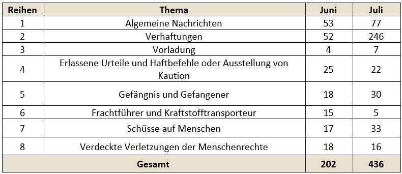 Diese statistischen Berichte wurden aus mehr als 209 Nachrichten erstellt, die im Laufe des Monats Juli 2025 gesammelt wurden.
