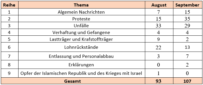 Berichte und Nachrichten über die Verletzung der Arbeitsrechte und der Rechte der Arbeiter im Monat September wurden von den Mitgliedern des Komitees zum Schutz der Arbeits- und Arbeiterrechte gesammel