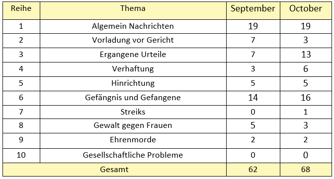 Die Nachrichten und Berichte über Verletzungen der Frauenrechte im Monat Oktober wurden von den Mitgliedern des Frauenausschusses gesammelt.
