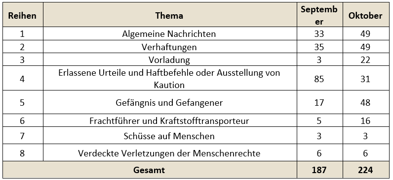 Diese statistischen Berichte wurden aus mehr als 197 Nachrichten erstellt, die im Laufe des Monats Oktober 2025 gesammelt wurden.