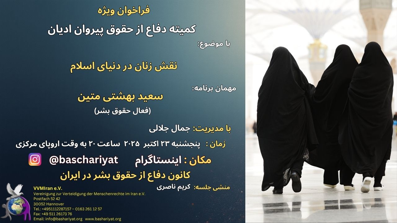 Die Live-Instagram-Sitzung des speziellen Aufrufs des Komitees zur Verteidigung der Rechte der Religionsanhänger im Iran fand am 23. Oktober 2025 um 20:00 Uhr mitteleuropäischer Zeit virtuell über Instagram Live statt,