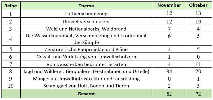 Diese Berichte wurden von der Website des Ausschusses zur Verteidigung der Umwelt zusammengestellt, die Informationen aus in- und ausländischen Medien wie Hrana, ILNA, IRNA, Dideban, ISNA, Mehr, Khabarban, Ghatreh, Tasnim, Euronews, Ensaf und dem Nachrichtenportal für Umwelt und Wildtiere gesammelt haben. Die obigen Statistiken wurden aus Berichten von in- und ausländischen Medien zusammengestellt, die von der Regierung der Islamischen Republik Iran anerkannt wurden, und können daher praktisch nicht mehr als 25 bis 30 Prozent der gesellschaftlichen Realität widerspiegeln.