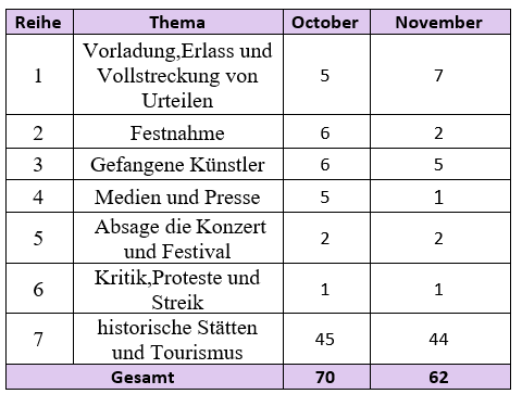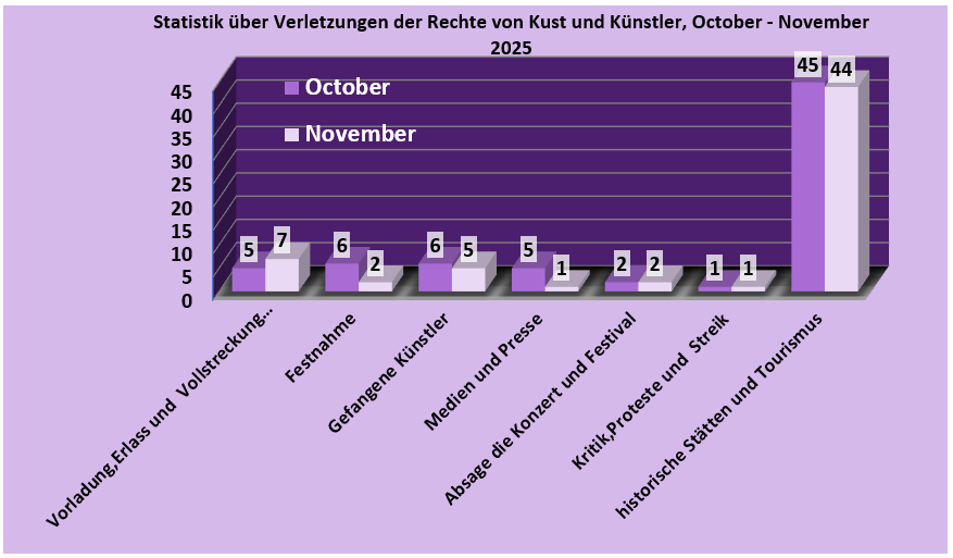 Nachrichten und Berichte im Zusammenhang mit Verletzungen der Rechte von Kunst und Künstlern wurden im November von Mitgliedern des Kunst- und Künstlerausschusses gesammelt.