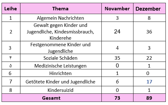 Diese statistischen Berichte wurden aus mehr als 80 Nachrichten im Laufe des Monats Dezember 2025 erstellt.