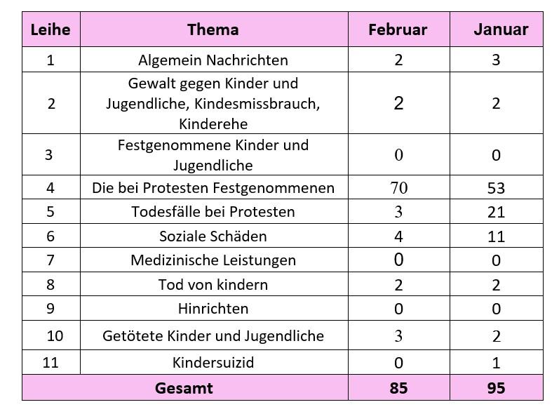 Bericht über die Verletzung der Rechte von Kindern und Jugendlichen, im October und Januar 2026