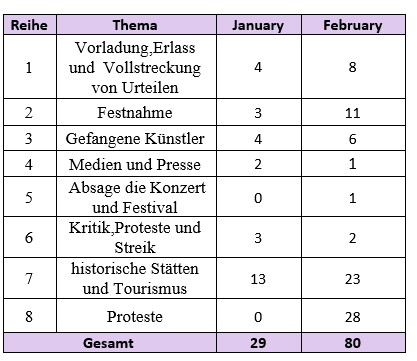 Bericht über die Verletzung der Rechte von Kunst und Künstlern im February 2026