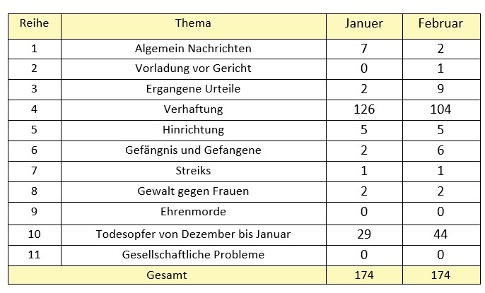 Die Nachrichten und Berichte über Verletzungen der Frauenrechte im Monat Februar wurden von den Mitgliedern des Frauenausschusses gesammelt.