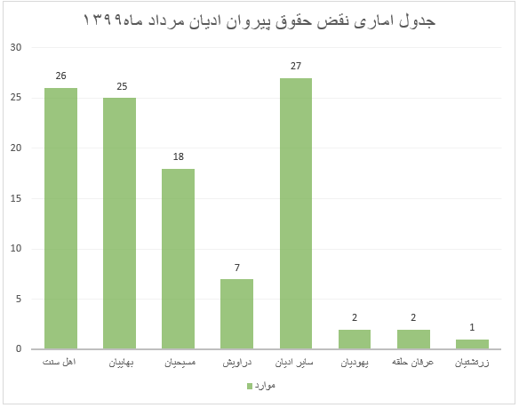 Für weitere Informationen: Die oben genannten Statistiken stammen aus in- und ausländischen Medienberichten, die von der Regierung der Islamischen Republik Iran genehmigt wurden, und können nicht mehr als 30% der Tatsachen der Gesellschaft ausmachen. Diese Berichte stammen von der Website des Ausschusses zur Verteidigung der Rechte von Anhängern von Religionen aus in- und ausländischen Medien wie z.B. ISNA, HRANA, IRNA, ILNA, Honaronline; Young Journalist Club; Fars Nachrichtenagentur, Kayhan, Hamshahri Online. Mitglieder die im August beim Sammeln von Nachrichten mitgearbeitet haben, sind: Seyed Shayan Hosseini Barzi, Sam Jabbari Kermani, Abbas Rezaei Salarvand und Reza Abbasi Zamanabadi. Weitere Informationen finden Sie unter folgendem Link:adian.bashariyat.org