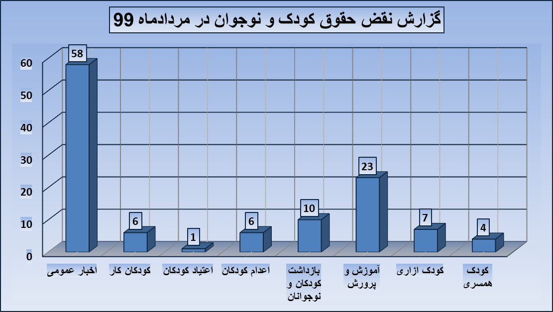 Die oben genannten Statistiken stammen aus in- und ausländischen Medienberichten, die von der Regierung der Islamischen Republik Iran genehmigt wurden, und können in der Praxis nicht mehr als 30% der Tatsachen der Gesellschaft ausmachen. Diese Berichte stammen von der Website des Ausschusses zur Verteidigung der Rechte von Kindern und Jugendlichen, der von in- und ausländischen Medien wie ISNA, Mashreq News; Rokna; Radio Zamaneh, Hrana; IRNA, ILNA, Voice of America Radio, BBC Radio; Iran; Drop; Radio morgen; Iranische Menschenrechtsorganisation; Young Journalist Club; Mehr Nachrichtenagentur; Nachrichtenagentur Khorasan; Law Newspaper, Tasnim; Belutsch Aktivistenkampagne; .https://koodak.bashariyat.org/?p=34014