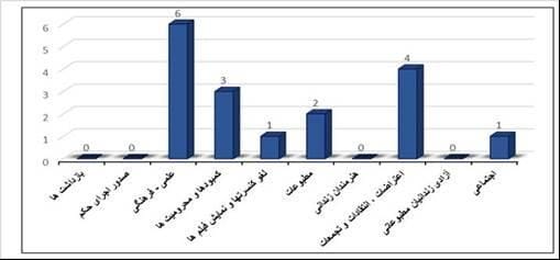 Für weitere Informationen: Die oben genannten Statistiken wurden aus in- und ausländischen Medienberichten zusammengestellt, die von der Regierung der Islamischen Republik Iran genehmigt wurden, und können in der Praxis nicht mehr als 30% der Tatsachen der Gesellschaft ausmachen. Diese Berichte wurden auf der Website des Komitees zur Verteidigung der Kunstrechte, die von in- und ausländischen Medien wie ISNA, HRANA, IRNA, ILNA, Honar Online, dem Club für junge Journalisten, der Nachrichtenagentur Fars, Kayhan, Hamshahri Online und Mehr News gesammelt. Weitere Informationen finden Sie unter folgendem Link:m