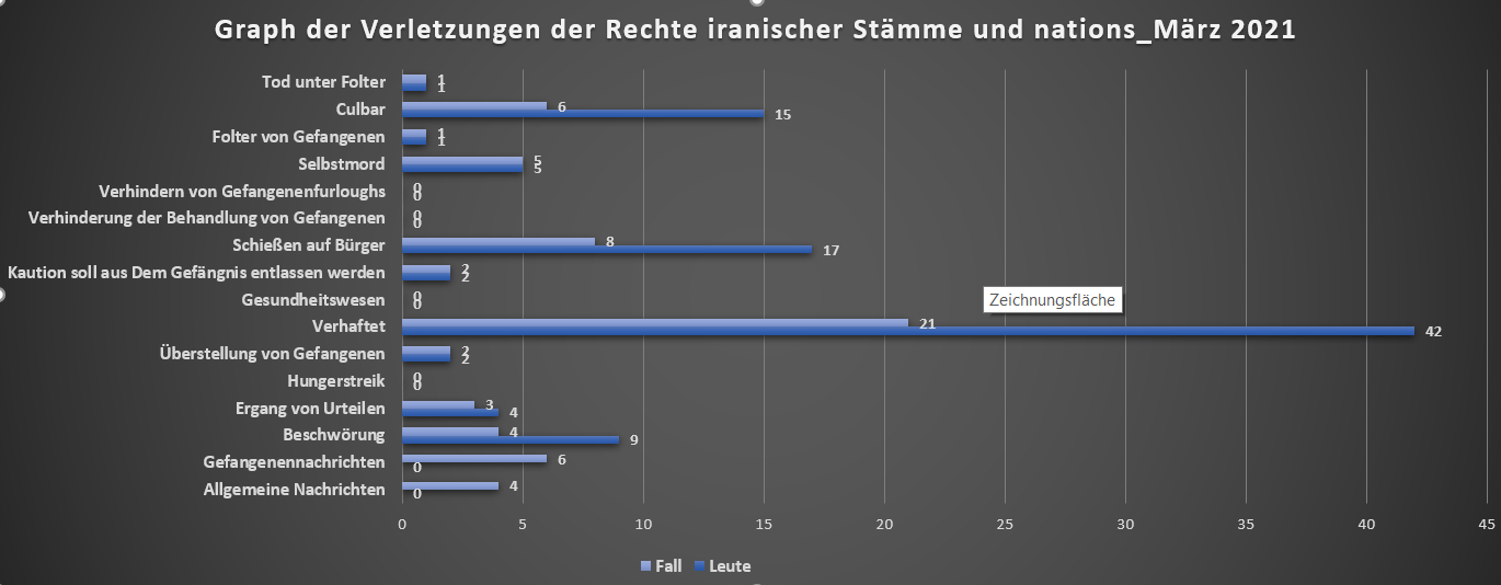 Die oben genannten Statistiken stammen aus in- und ausländischen Medienberichten, die von der Regierung der Islamischen Republik Iran genehmigt wurden, und dürfen 25 bis 30 Prozent der Realitäten der Gesellschaft nicht überschreiten. Diese statistischen Berichte wurden im Mai unter mehr als 85 Nachrichten veröffentlicht. Diese Berichte wurden von der Website des Komitees zur Verteidigung der Rechte iranischer Ethnien und Nationen gesammelt, die von in- und ausländischen Medien wie ISNA, HRANA, IRNA, ILNA, Art Online, Young Journalists Club, Fars News Agency, Kayhan, Hamshahri Online und Mehrnews gesammelt werden. . Kollegen, die bei der Sammlung dieser Nachrichten mitarbeiteten, verletzten im Mai die Rechte iranischer ethnischer Gruppen und Nationen. Meine Damen und Herren:Ahmad Haji Ghader Marhomi,Sahar haji Ghader Marhomi, Mehran Ahangar Khorasani, Vahid Hassanzadeh, Karim Naseri, Iraj Dana, Ebrahim Yousefi, Arian Tavassoli, Narges Mobasherifar, Ali Rahmani, Neda Foroughi, Majid Raoufi, Mahmoud Havalat, Parisa Nikonam, Farhang Vali, Hossein Ghasemi, Naser Norouzi, Ilya Naseri, Arash Ahmadi, Weitere Informationen finden Sie unter dem untenstehenden Link