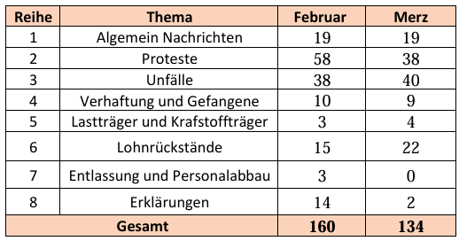 Diese statistischen Berichte wurden aus mehr als 160 Nachrichten im Laufe des Monats März 2025 zusammengestellt.