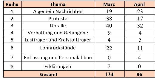 Diese statistischen Berichte wurden aus mehr als 96 Nachrichten im Laufe des Monats April 2025 zusammengestellt.