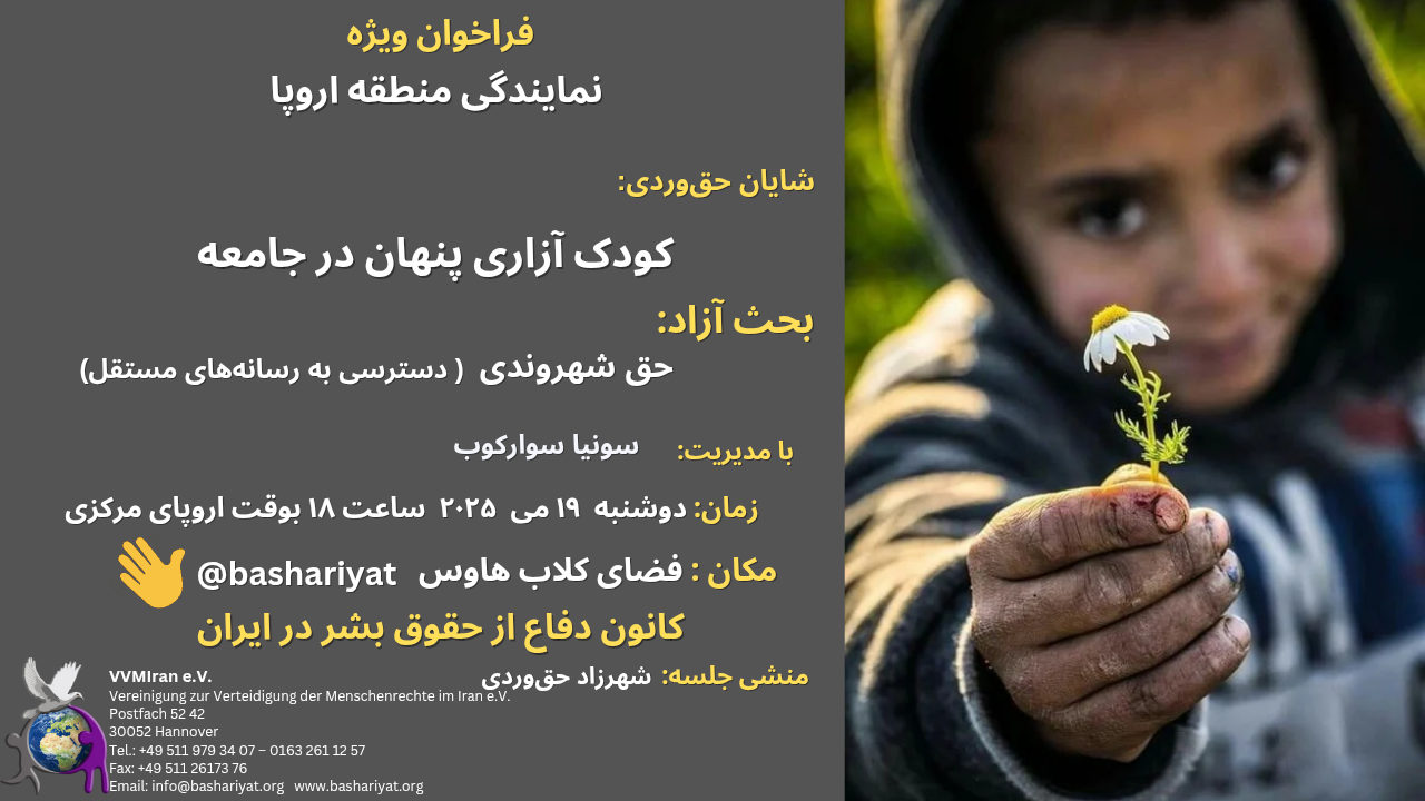 Tagungsort: Clubhouse (der Vereinigung zur Verteidigung der Menschenrechte im Iran)