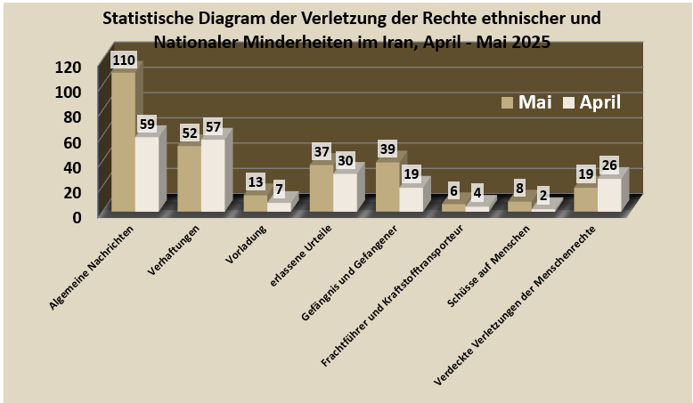 Die Kollegen, die bei der Sammlung dieser Nachrichten über Verstöße gegen die Rechte der ethnischen Gruppen und Nationen Irans im Monat Mai mitgewirkt haben, sind: Sadegh Farokhi Ghasr-Assemi, Pegah Jafari, Marzieh Alikarmi, Mahmood Golestani, Nasrin Jahani Golsheykh, Mojtaba Masumi, Farshad Arabi, Sareh Ostovar und Reza Shaighan. Weitere Informationen sind unter dem folgenden Link verfügbar: