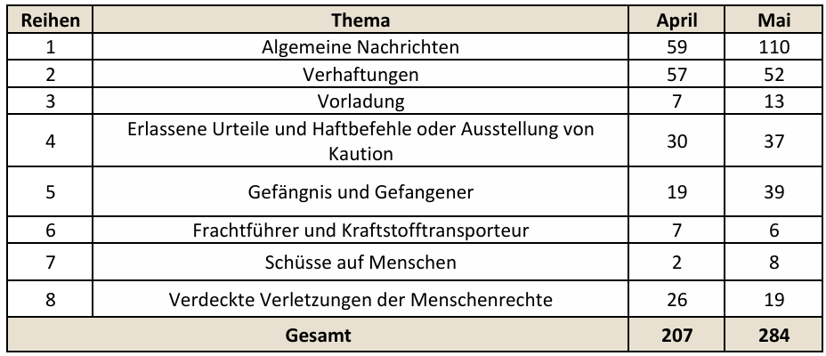 Diese statistischen Berichte wurden aus mehr als 200 Nachrichten erstellt, die im Laufe des Monats Mai 2025 gesammelt wurden.